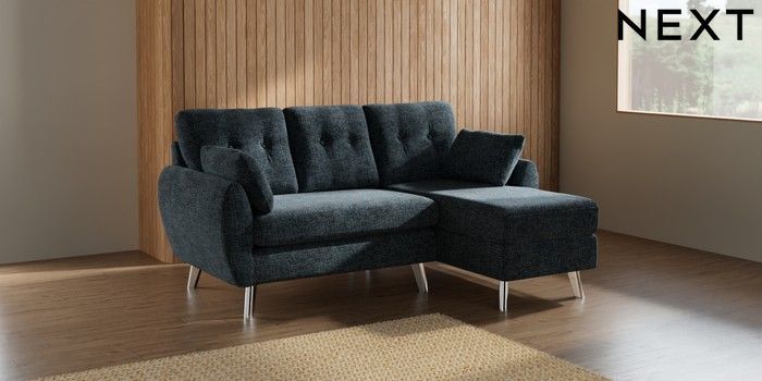 7.3.1 Buy Wilson Buttoned Back Small Sofa Chaise - Right Hand Chunky Chenille Dark Navy Blue Metal Tapered - Chrome from the Seasons online shop Click here to use our website with more accessibility support, for example screen readers