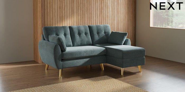 7.3.1 Buy Wilson Buttoned Back Small Sofa Chaise - Right Hand Chunky Chenille Light Teal Green Metal Tapered - Gold from the Seasons online shop Click here to use our website with more accessibility support, for example screen readers