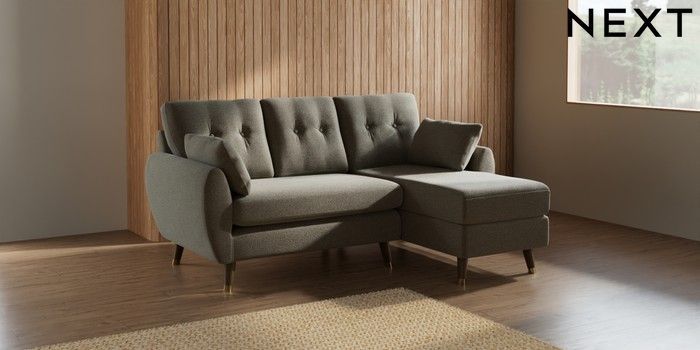 7.3.1 Buy Wilson Buttoned Back Small Sofa Chaise - Right Hand Chunky Marl Light Olive Green Low Retro Tapered Metal Cap - Mid from the Seasons online shop Click here to use our website with more accessibility support, for example screen readers