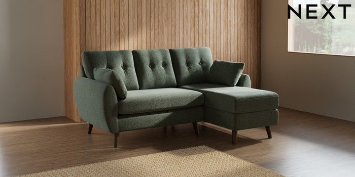 7.2.10 Buy Wilson Buttoned Back Small Sofa Chaise - Right Hand Chunky Texture Mid Forest Green Retro Tapered - Mid from the Seasons online shop Click here to use our website with more accessibility support, for example screen readers