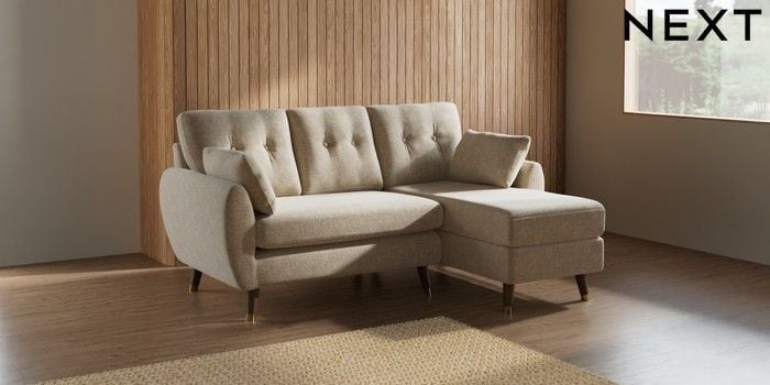 7.3.1 Buy Wilson Buttoned Back Small Sofa Chaise - Right Hand Chunky Weave Cream Low Retro Tapered Metal Cap - Mid from the Seasons online shop Click here to use our website with more accessibility support, for example screen readers
