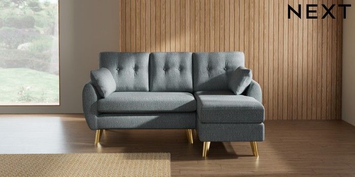 7.3.1 Buy Wilson Buttoned Back Small Sofa Chaise - Right Hand Chunky Weave Mid Blue Metal Tapered - Gold from the Seasons online shop Click here to use our website with more accessibility support, for example screen readers