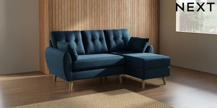 7.2.10 Buy Wilson Buttoned Back Small Sofa Chaise - Right Hand Cotswold Chenille Dark Blue Retro Tapered - Light from the Seasons online shop Click here to use our website with more accessibility support, for example screen readers