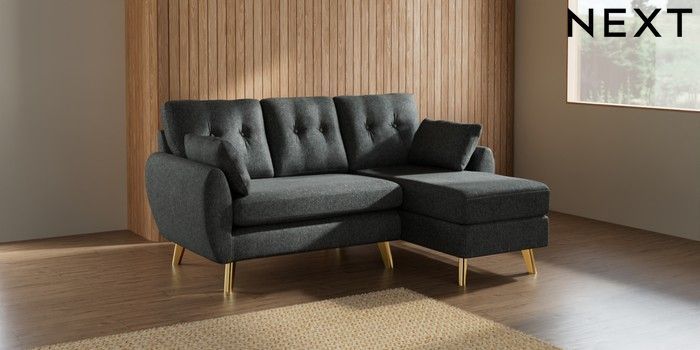7.3.1 Buy Wilson Buttoned Back Small Sofa Chaise - Right Hand Cotswold Chenille Dark Grey Metal Tapered - Gold from the Seasons online shop Click here to use our website with more accessibility support, for example screen readers