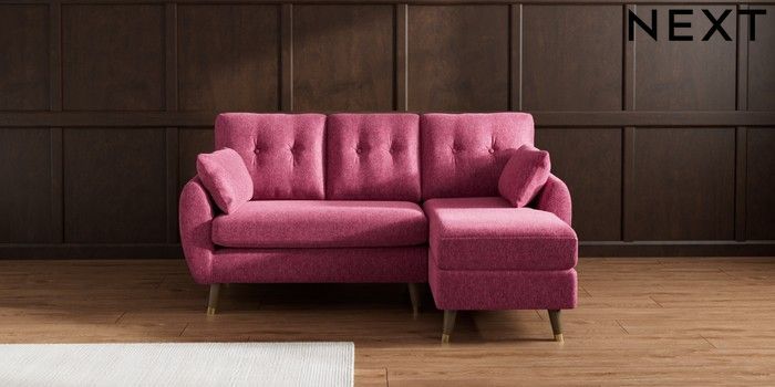 7.3.1 Buy Wilson Buttoned Back Small Sofa Chaise - Right Hand Cotswold Chenille Dark Raspberry Pink Low Retro Tapered Metal Cap - Mid from the Seasons online shop Click here to use our website with more accessibility support, for example screen readers
