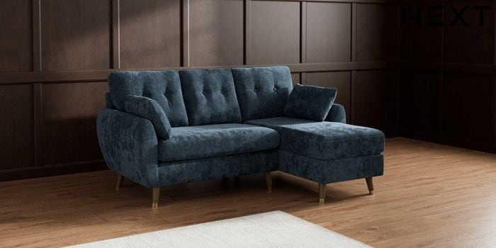 7.3.1 Buy Wilson Buttoned Back Small Sofa Chaise - Right Hand Distressed Velour Midnight Blue Low Retro Tapered Metal Cap - Mid from the Seasons online shop Click here to use our website with more accessibility support, for example screen readers