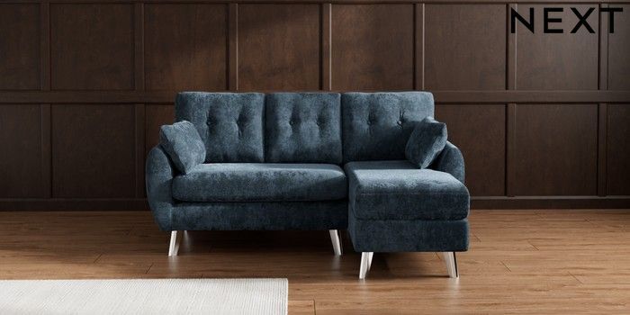 7.3.1 Buy Wilson Buttoned Back Small Sofa Chaise - Right Hand Distressed Velour Midnight Blue Metal Tapered - Chrome from the Seasons online shop Click here to use our website with more accessibility support, for example screen readers