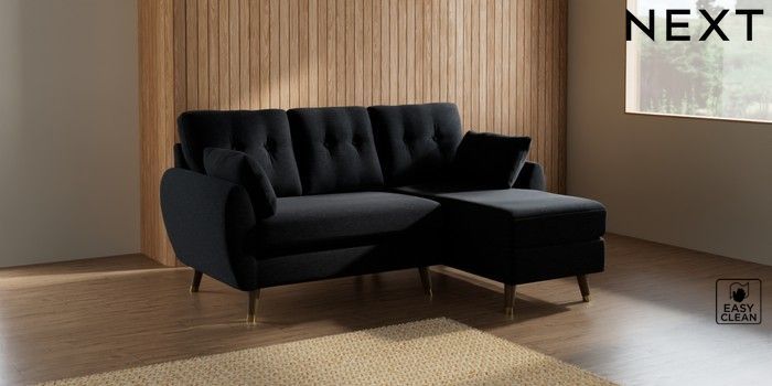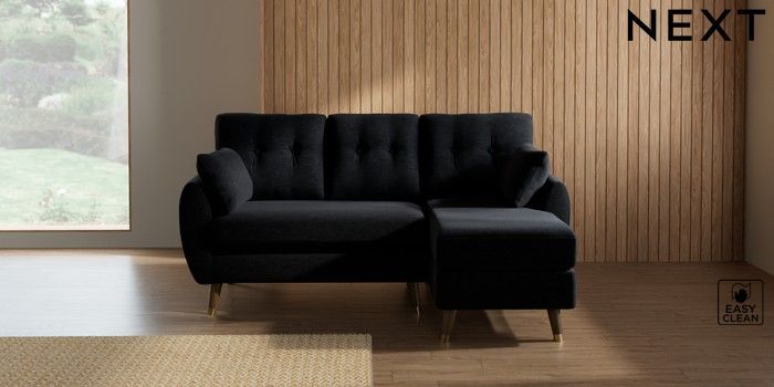 7.3.1 Buy Wilson Buttoned Back Small Sofa Chaise - Right Hand Fine Chenille Easy Clean Black Low Retro Tapered Metal Cap - Mid from the Seasons online shop Click here to use our website with more accessibility support, for example screen readers