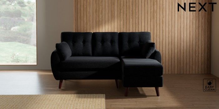 7.3.1 Buy Wilson Buttoned Back Small Sofa Chaise - Right Hand Fine Chenille Easy Clean Black Retro Tapered - Dark Brown from the Seasons online shop Click here to use our website with more accessibility support, for example screen readers
