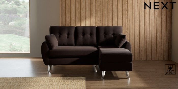 7.3.1 Buy Wilson Buttoned Back Small Sofa Chaise - Right Hand Fine Chenille Easy Clean Chocolate Brown Metal Tapered - Chrome from the Seasons online shop Click here to use our website with more accessibility support, for example screen readers
