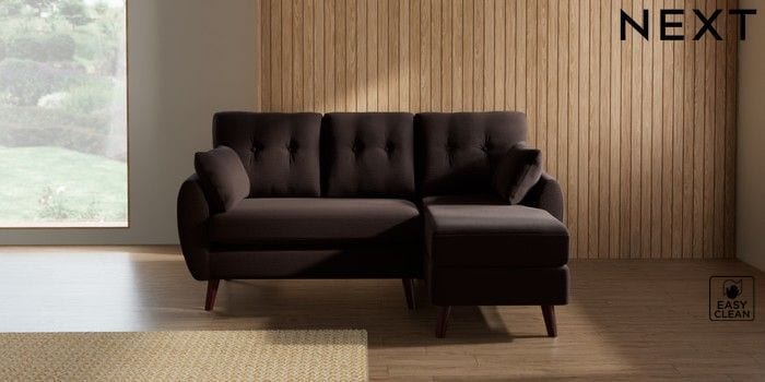 7.3.1 Buy Wilson Buttoned Back Small Sofa Chaise - Right Hand Fine Chenille Easy Clean Chocolate Brown Retro Tapered - Dark Brown from the Seasons online shop Click here to use our website with more accessibility support, for example screen readers