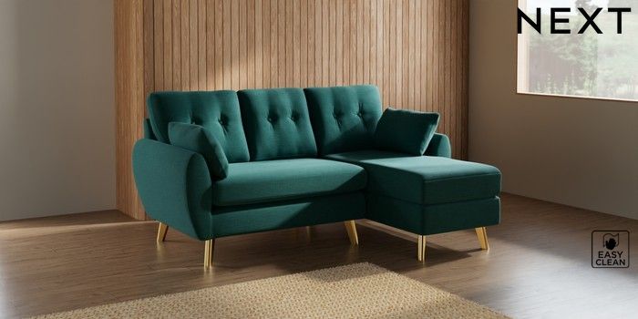 7.3.1 Buy Wilson Buttoned Back Small Sofa Chaise - Right Hand Fine Chenille Easy Clean Dark Juniper Green Metal Tapered - Gold from the Seasons online shop Click here to use our website with more accessibility support, for example screen readers
