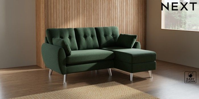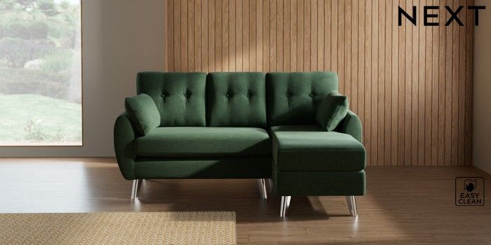 7.3.1 Buy Wilson Buttoned Back Small Sofa Chaise - Right Hand Fine Chenille Easy Clean Mid Khaki Green Metal Tapered - Chrome from the Seasons online shop Click here to use our website with more accessibility support, for example screen readers