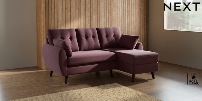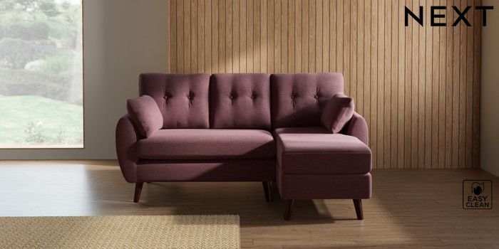 7.3.1 Buy Wilson Buttoned Back Small Sofa Chaise - Right Hand Fine Chenille Easy Clean Mid Mulberry Purple Retro Tapered - Dark Brown from the Seasons online shop Click here to use our website with more accessibility support, for example screen readers