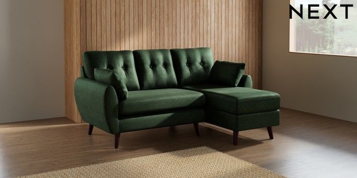 7.3.1 Buy Wilson Buttoned Back Small Sofa Chaise - Right Hand Luxe Chenille Dark Green Retro Tapered - Dark Brown from the Seasons online shop Click here to use our website with more accessibility support, for example screen readers