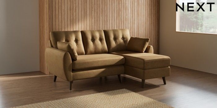 7.3.1 Buy Wilson Buttoned Back Small Sofa Chaise - Right Hand Luxe Chenille Honey Yellow Retro Tapered - Mid from the Seasons online shop Click here to use our website with more accessibility support, for example screen readers