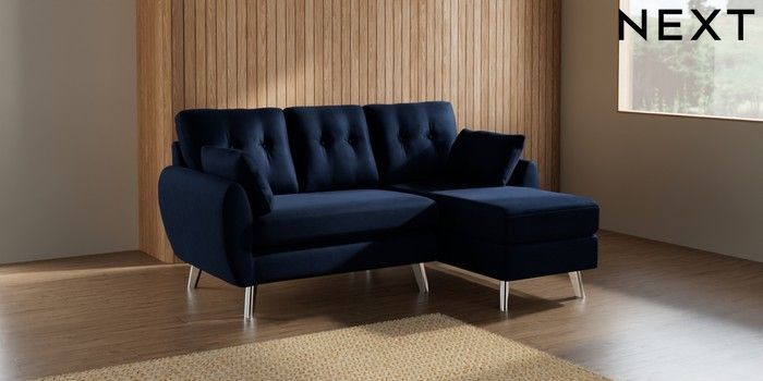 7.3.1 Buy Wilson Buttoned Back Small Sofa Chaise - Right Hand Luxe Chenille Navy Blue Metal Tapered - Chrome from the Seasons online shop Click here to use our website with more accessibility support, for example screen readers