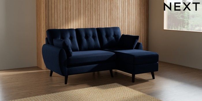 7.2.10 Buy Wilson Buttoned Back Small Sofa Chaise - Right Hand Luxe Chenille Navy Blue Retro Tapered - Dark from the Seasons online shop Click here to use our website with more accessibility support, for example screen readers