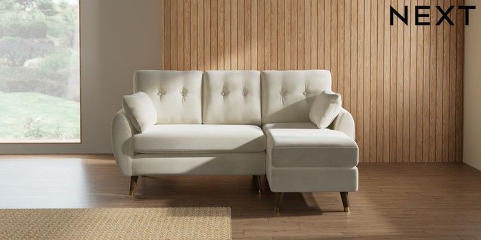 7.3.1 Buy Wilson Buttoned Back Small Sofa Chaise - Right Hand Luxe Chenille Oyster Low Retro Tapered Metal Cap - Mid from the Seasons online shop Click here to use our website with more accessibility support, for example screen readers