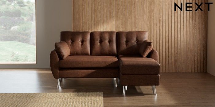7.3.1 Buy Wilson Buttoned Back Small Sofa Chaise - Right Hand Monza Faux Leather Easy Clean Chestnut Brown Metal Tapered - Chrome from the Seasons online shop