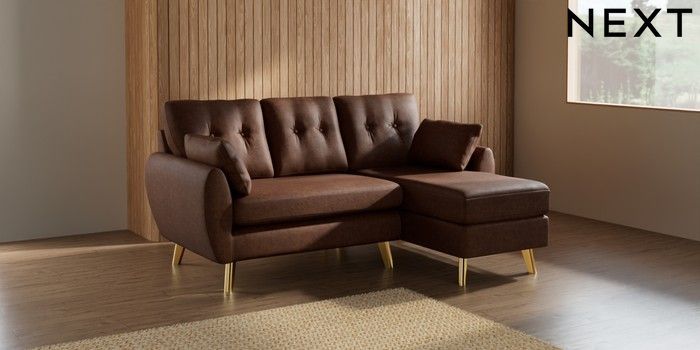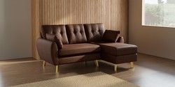 7.3.1 Buy Wilson Buttoned Back Small Sofa Chaise - Right Hand Monza Faux Leather Easy Clean Chestnut Brown Metal Tapered - Gold from the Seasons online shop
