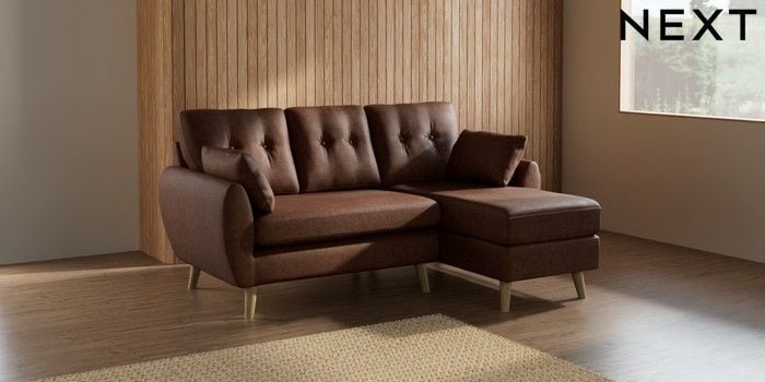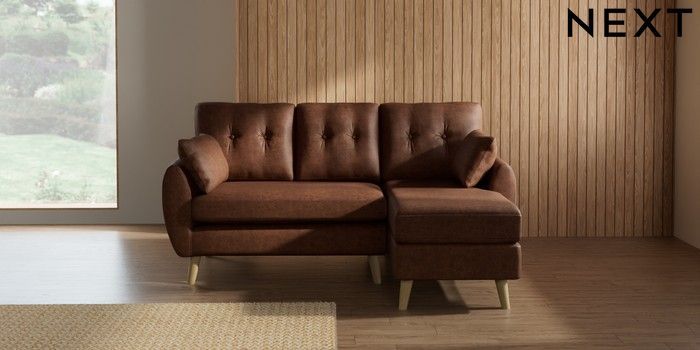 7.3.1 Buy Wilson Buttoned Back Small Sofa Chaise - Right Hand Monza Faux Leather Easy Clean Chestnut Brown Retro Tapered - Light from the Seasons online shop Click here to use our website with more accessibility support, for example screen readers