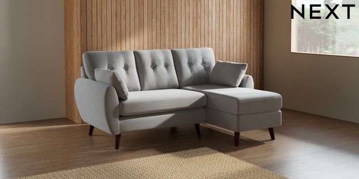 7.3.1 Buy Wilson Buttoned Back Small Sofa Chaise - Right Hand Natural Mix Light Grey Retro Tapered - Dark Brown from the Seasons online shop Click here to use our website with more accessibility support, for example screen readers