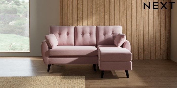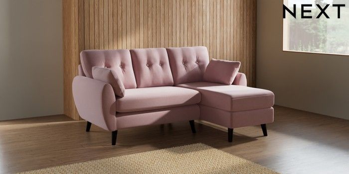7.3.1 Buy Wilson Buttoned Back Small Sofa Chaise - Right Hand Natural Mix Light Rose Pink Retro Tapered - Dark from the Seasons online shop Click here to use our website with more accessibility support, for example screen readers