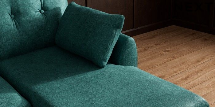 7.3.1 Buy Wilson Buttoned Back Small Sofa Chaise - Right Hand Plush Chenille Dark Teal Green Metal Tapered - Chrome from the Seasons online shop Click here to use our website with more accessibility support, for example screen readers