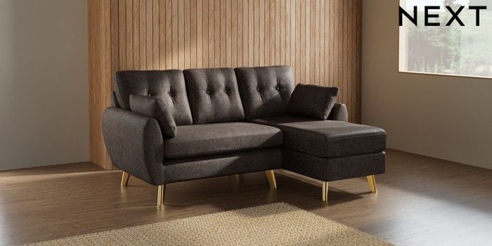 7.3.1 Buy Wilson Buttoned Back Small Sofa Chaise - Right Hand Plush Chenille Mink Brown Metal Tapered - Gold from the Seasons online shop Click here to use our website with more accessibility support, for example screen readers