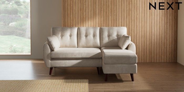 7.3.1 Buy Wilson Buttoned Back Small Sofa Chaise - Right Hand Plush Chenille Oyster Retro Tapered - Dark Brown from the Seasons online shop Click here to use our website with more accessibility support, for example screen readers