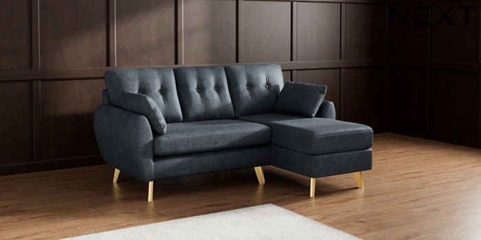 7.3.1 Buy Wilson Buttoned Back Small Sofa Chaise - Right Hand Plush Chenille Slate Blue Metal Tapered - Gold from the Seasons online shop Click here to use our website with more accessibility support, for example screen readers