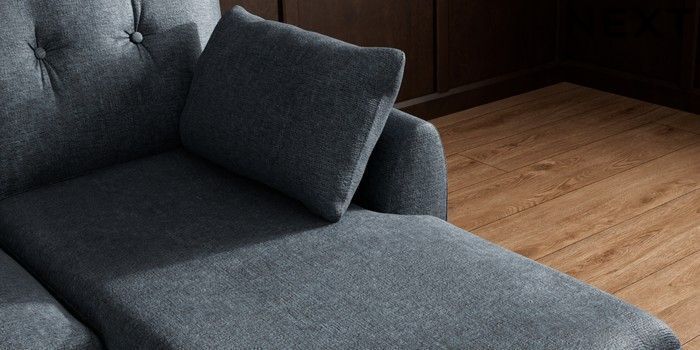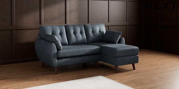 7.3.1 Buy Wilson Buttoned Back Small Sofa Chaise - Right Hand Plush Chenille Slate Blue Retro Tapered - Dark Brown from the Seasons online shop Click here to use our website with more accessibility support, for example screen readers