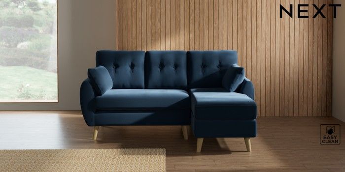 7.3.1 Buy Wilson Buttoned Back Small Sofa Chaise - Right Hand Plush Velvet Easy Clean Airforce Blue Retro Tapered - Light from the Seasons online shop Click here to use our website with more accessibility support, for example screen readers