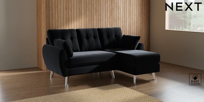 7.3.1 Buy Wilson Buttoned Back Small Sofa Chaise - Right Hand Plush Velvet Easy Clean Charcoal Grey Metal Tapered - Chrome from the Seasons online shop Click here to use our website with more accessibility support, for example screen readers