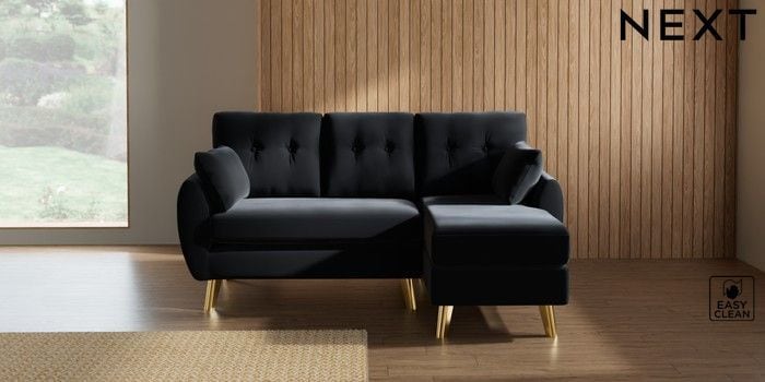 7.3.1 Buy Wilson Buttoned Back Small Sofa Chaise - Right Hand Plush Velvet Easy Clean Charcoal Grey Metal Tapered - Gold from the Seasons online shop Click here to use our website with more accessibility support, for example screen readers