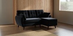 7.3.1 Buy Wilson Buttoned Back Small Sofa Chaise - Right Hand Plush Velvet Easy Clean Charcoal Grey Retro Tapered - Dark Brown from the Seasons online shop Click here to use our website with more accessibility support, for example screen readers