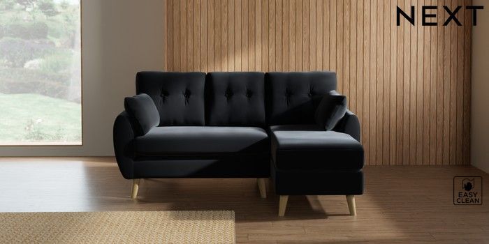7.3.1 Buy Wilson Buttoned Back Small Sofa Chaise - Right Hand Plush Velvet Easy Clean Charcoal Grey Retro Tapered - Light from the Seasons online shop Click here to use our website with more accessibility support, for example screen readers