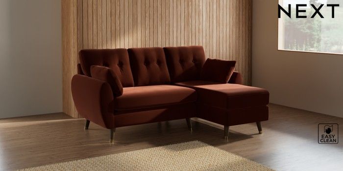 7.3.1 Buy Wilson Buttoned Back Small Sofa Chaise - Right Hand Plush Velvet Easy Clean Ginger Orange Low Retro Tapered Metal Cap - Mid from the Seasons online shop Click here to use our website with more accessibility support, for example screen readers