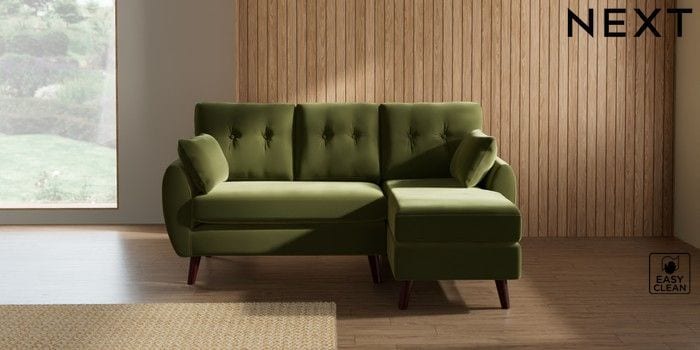 7.3.1 Buy Wilson Buttoned Back Small Sofa Chaise - Right Hand Plush Velvet Easy Clean Mid Olive Green Retro Tapered - Dark Brown from the Seasons online shop Click here to use our website with more accessibility support, for example screen readers