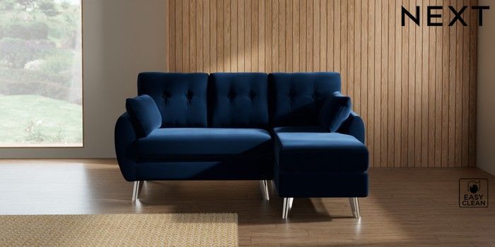 7.3.1 Buy Wilson Buttoned Back Small Sofa Chaise - Right Hand Plush Velvet Easy Clean Navy Blue Metal Tapered - Chrome from the Seasons online shop Click here to use our website with more accessibility support, for example screen readers