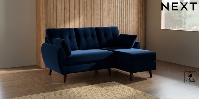 7.3.1 Buy Wilson Buttoned Back Small Sofa Chaise - Right Hand Plush Velvet Easy Clean Navy Blue Retro Tapered - Dark Brown from the Seasons online shop Click here to use our website with more accessibility support, for example screen readers