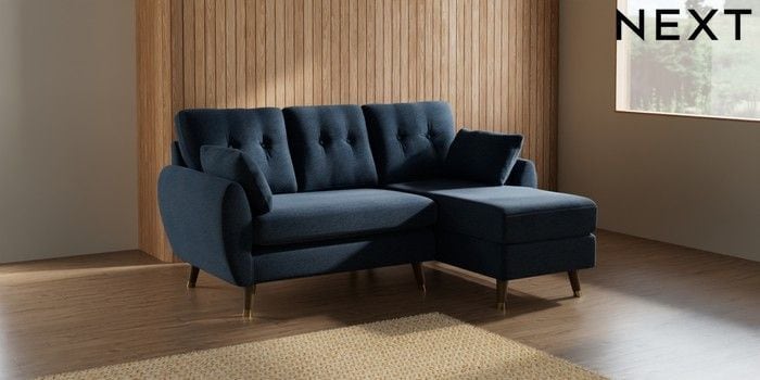 7.3.1 Buy Wilson Buttoned Back Small Sofa Chaise - Right Hand Ripple Chenille Dark Blue Low Retro Tapered Metal Cap - Mid from the Seasons online shop Click here to use our website with more accessibility support, for example screen readers