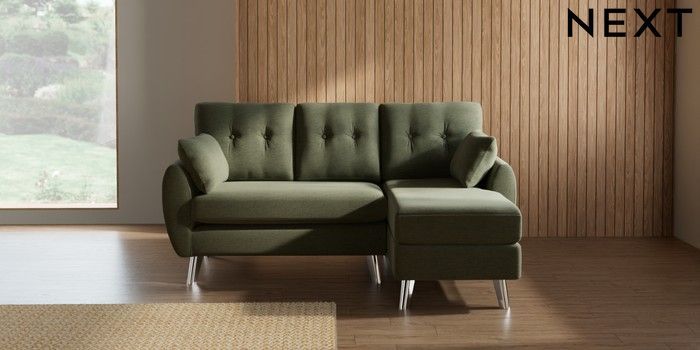 7.3.1 Buy Wilson Buttoned Back Small Sofa Chaise - Right Hand Ripple Chenille Mid Moss Green Metal Tapered - Chrome from the Seasons online shop Click here to use our website with more accessibility support, for example screen readers