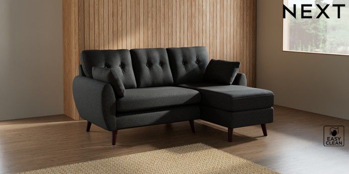 7.3.1 Buy Wilson Buttoned Back Small Sofa Chaise - Right Hand Tweedy Blend Easy Clean Charcoal Grey Retro Tapered - Dark Brown from the Seasons online shop Click here to use our website with more accessibility support, for example screen readers