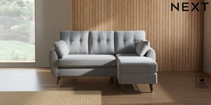 7.3.1 Buy Wilson Buttoned Back Small Sofa Chaise - Right Hand Tweedy Blend Easy Clean Light Silver Grey Low Retro Tapered Metal Cap - Mid from the Seasons online shop Click here to use our website with more accessibility support, for example screen readers