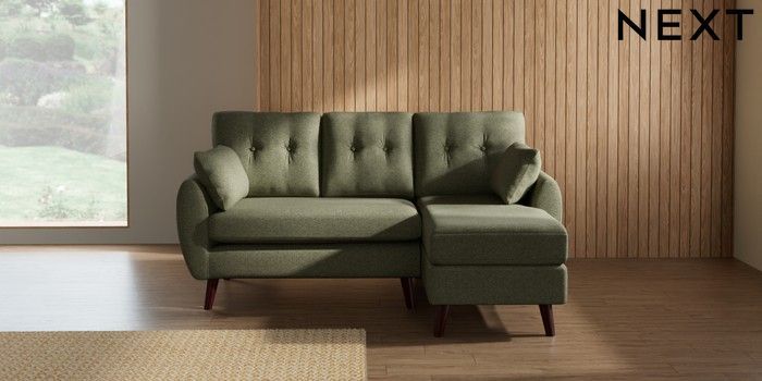 7.3.1 Buy Wilson Buttoned Back Small Sofa Chaise - Right Hand Tweedy Chenille Mid Moss Green Retro Tapered - Dark Brown from the Seasons online shop Click here to use our website with more accessibility support, for example screen readers
