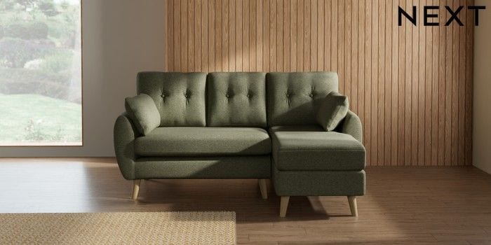 7.3.1 Buy Wilson Buttoned Back Small Sofa Chaise - Right Hand Tweedy Chenille Mid Moss Green Retro Tapered - Light from the Seasons online shop Click here to use our website with more accessibility support, for example screen readers