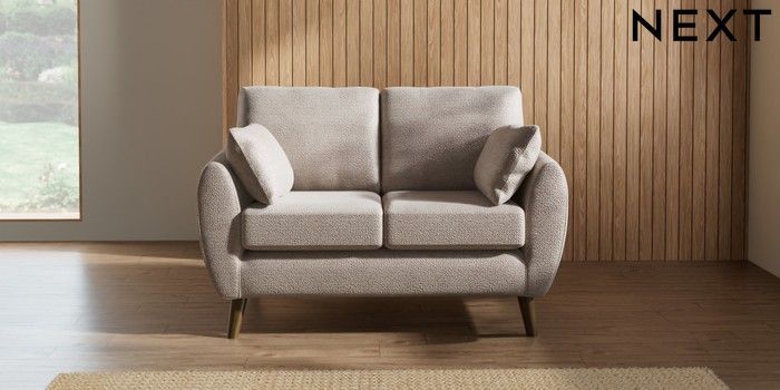 7.3.1 Buy Wilson 2 Seater Small Sofa Boucle Chenille Light Natural Retro Tapered - Mid from the Seasons online shop Click here to use our website with more accessibility support, for example screen readers