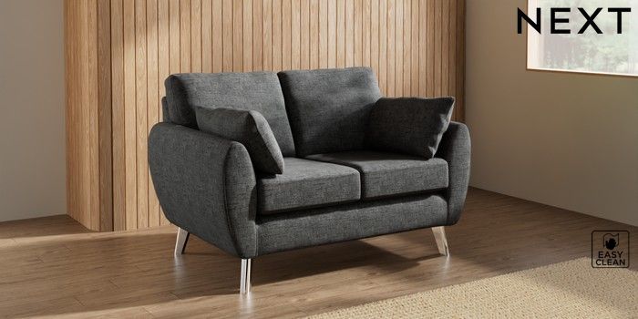 7.3.1 Buy Wilson 2 Seater Small Sofa Boucle Weave Easy Clean Charcoal Grey Metal Tapered - Chrome from the Seasons online shop Click here to use our website with more accessibility support, for example screen readers